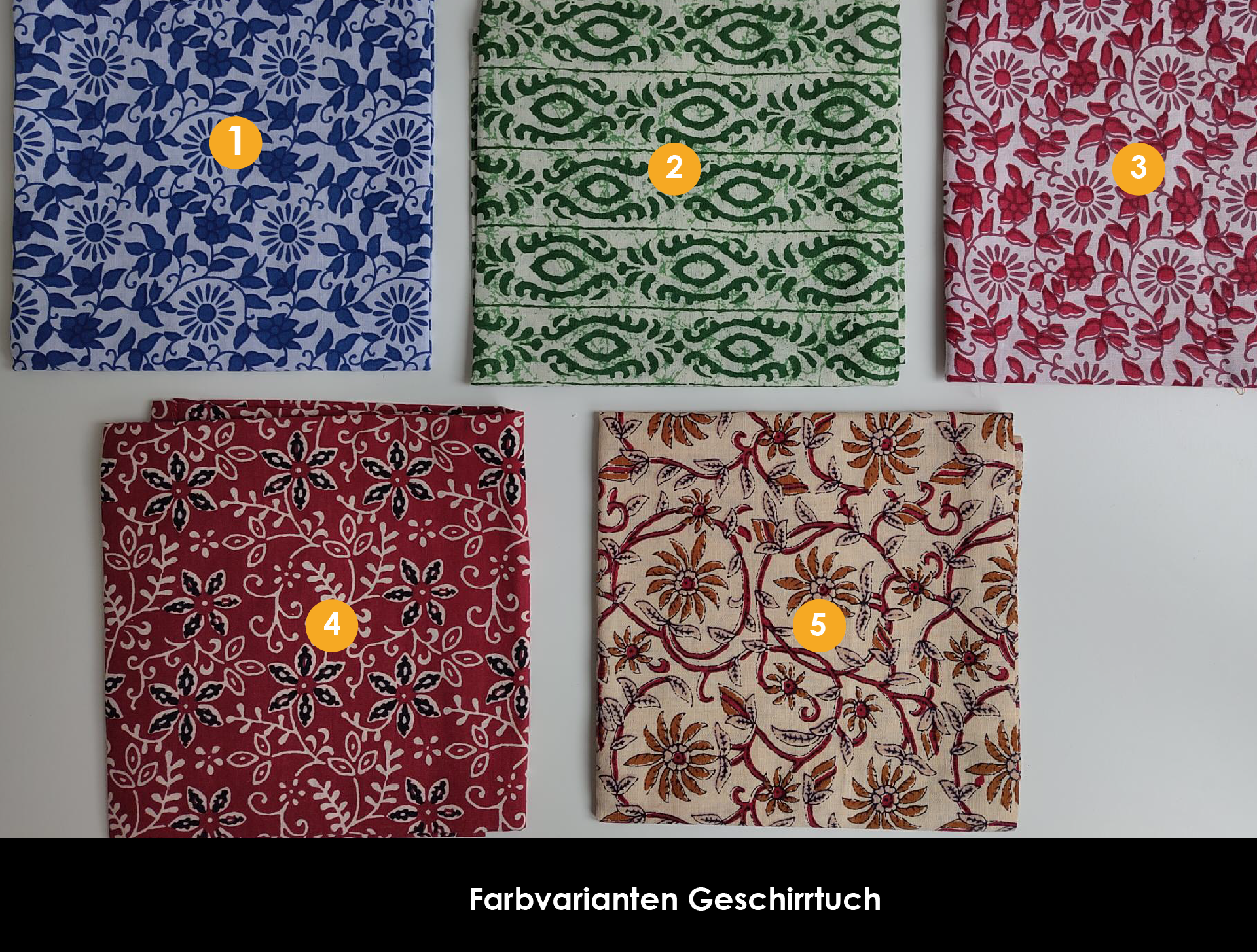 Geschirrtuch aus Baumwolle mit indischen Blockprints. Hergestellt im Textilverarbeitungszentrum unserer Partnerorganisation in Hyderabad.
