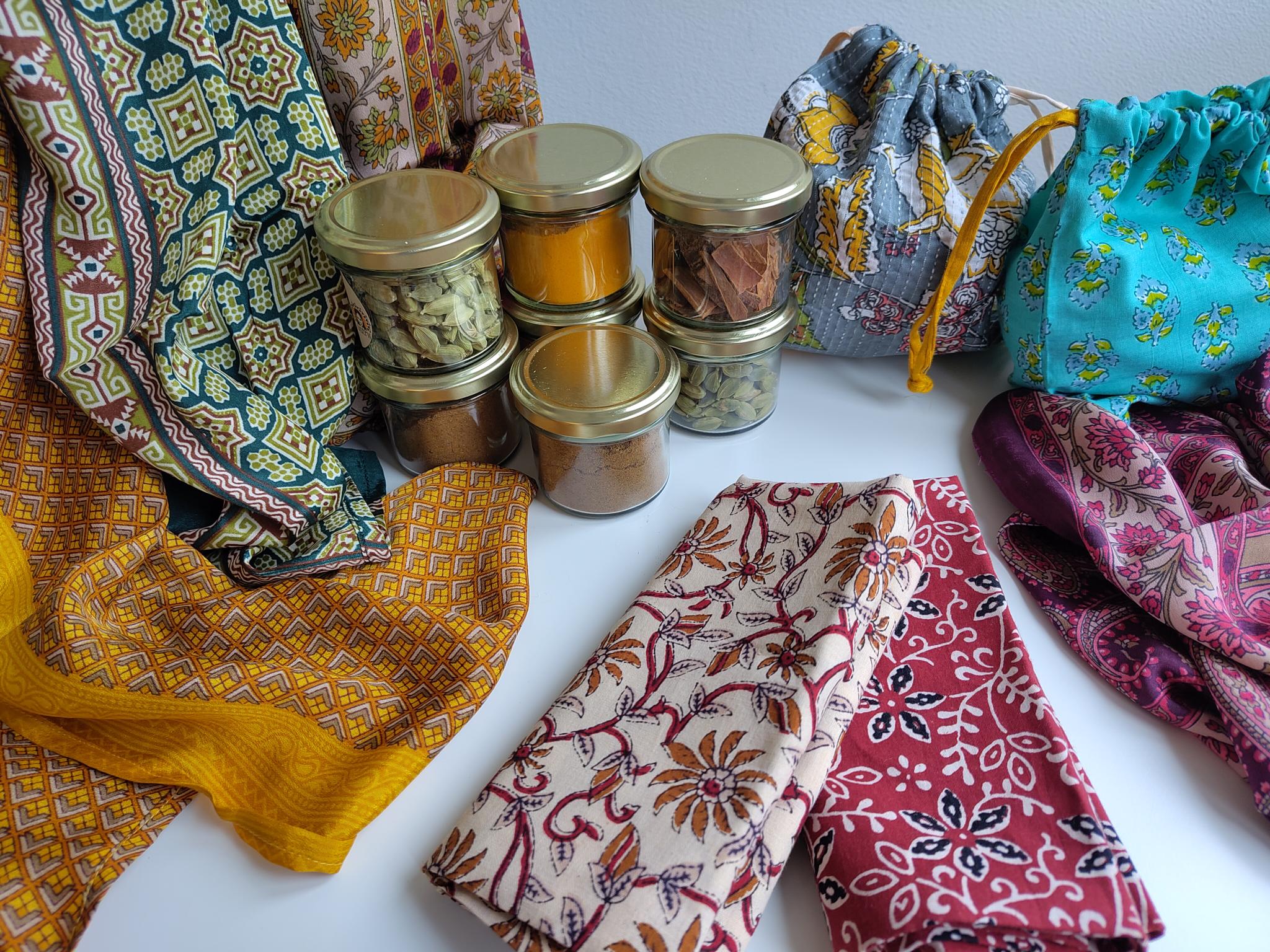 Wir haben eine Auswahl an Produkten für Sie zusammengestellt, viele davon hat das Team des Textilverabreitungszentrums in Hyderabad extra für Usthi entworfen und geschneidert. Wir hoffen, Sie und Ihre Liebsten erfreuen sich an den schönen Stoffen, bunten Mustern und feinen Gewürzdüften genauso wie wir – und wünschen schöne Festtage!
