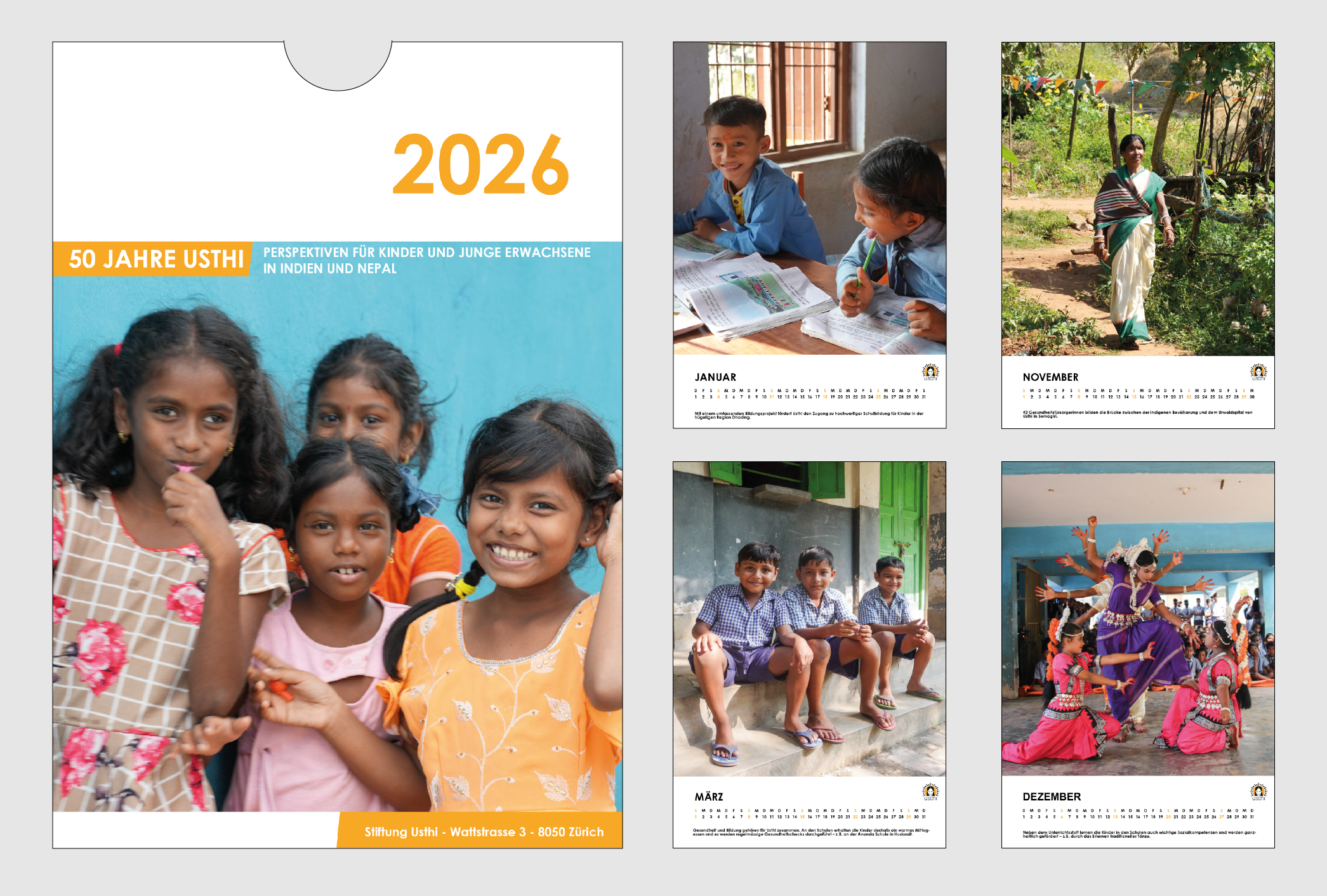 Mit dem Jahreswechsel startet ein besonderes Jahr. 2026 wird Usthi 50! Zu diesem Anlass haben wir den Usthi-Kalender 2026 zusammengestellt. Zwölf eindrucksvolle Bilder aus Indien und Nepal begleiten durch das Jubiläumsjahr.